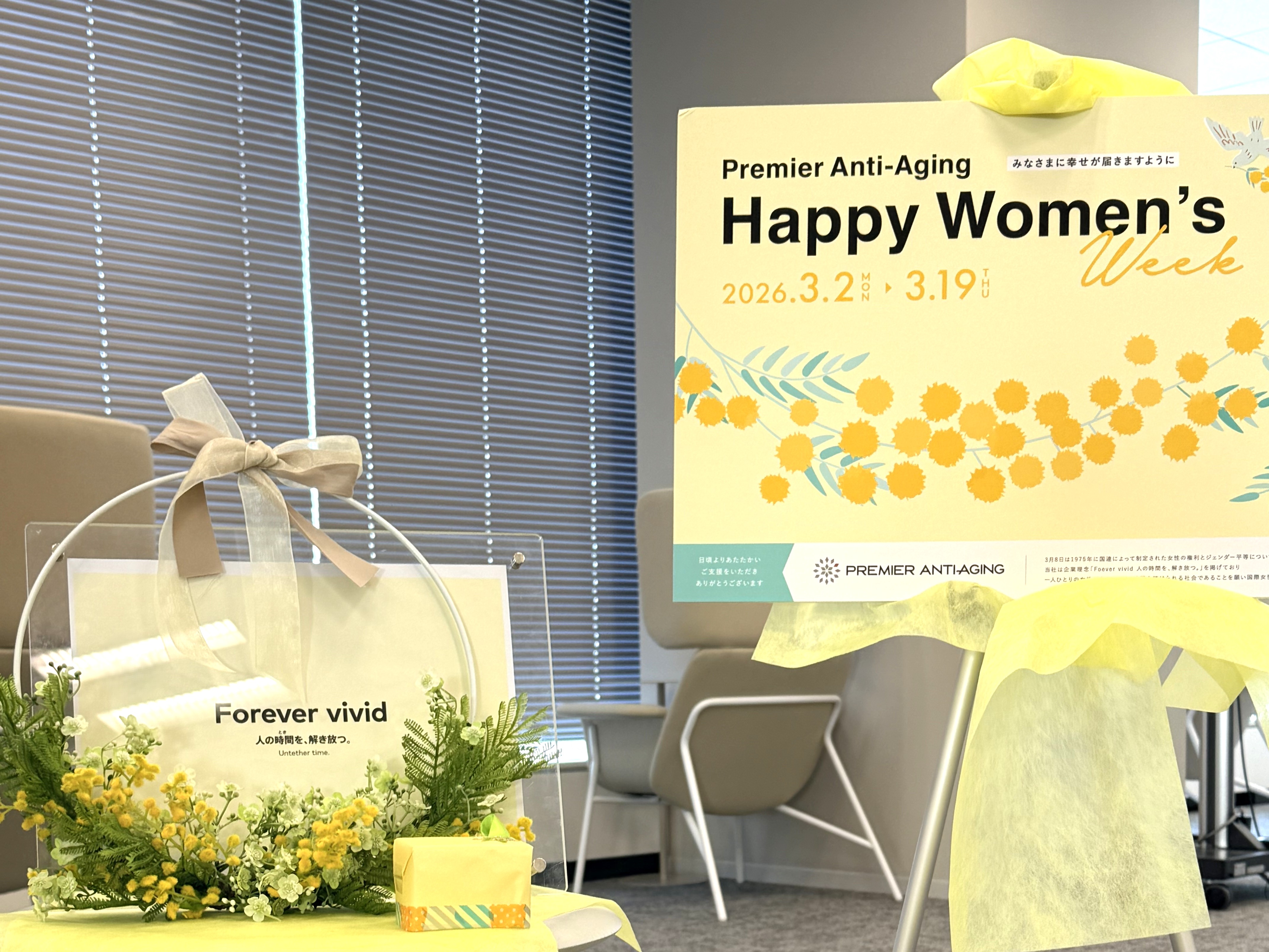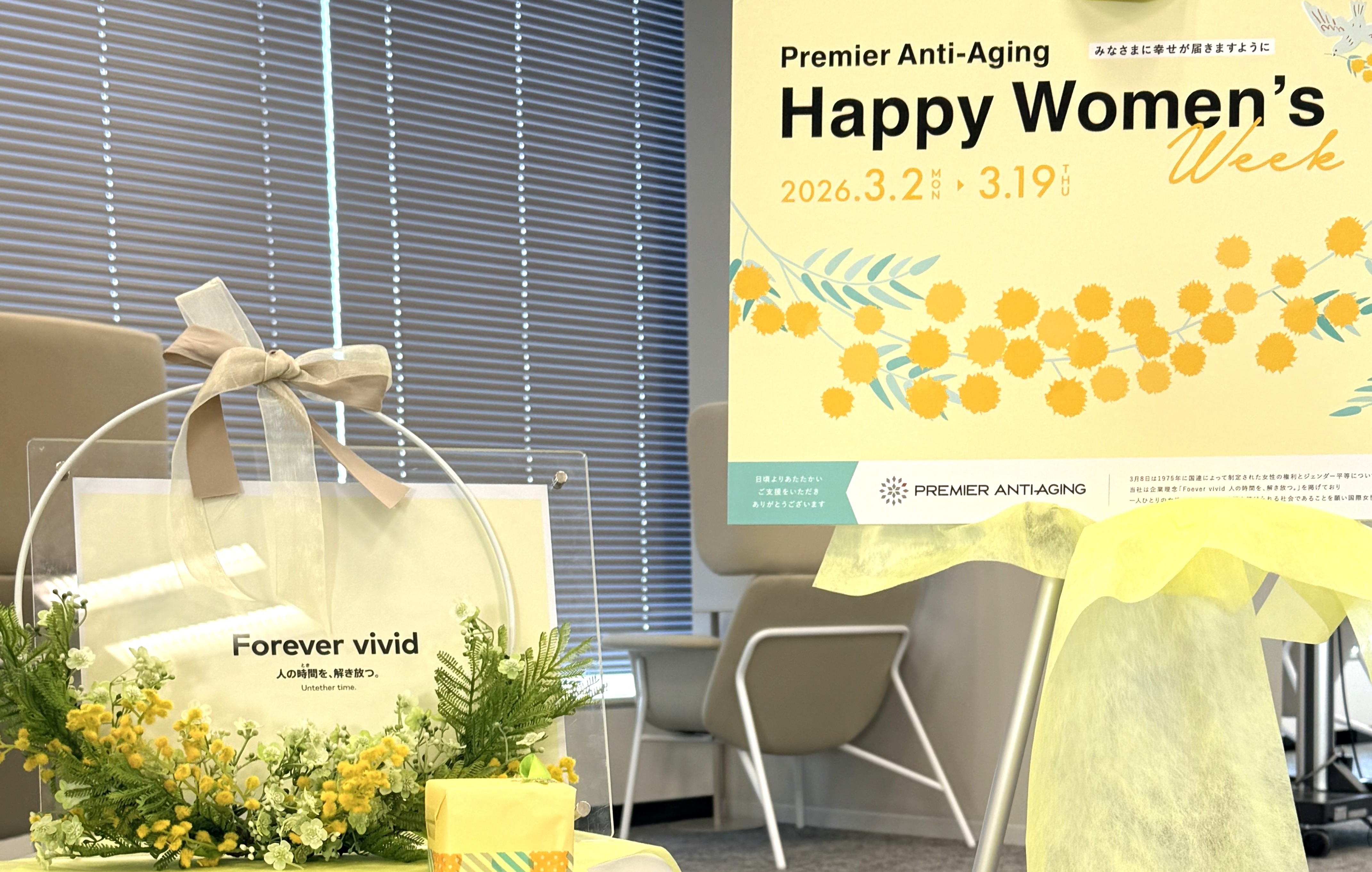 プレミアアンチエイジングでは、「Forever vivid ⼈の時間を解き放つ。」をスローガンとして、年齢や性別などの固定概念に対する先⼊観から解放されて、⼀⼈ひとりが好奇⼼を持ってチャレンジし続けられる世界を⽬指しています。