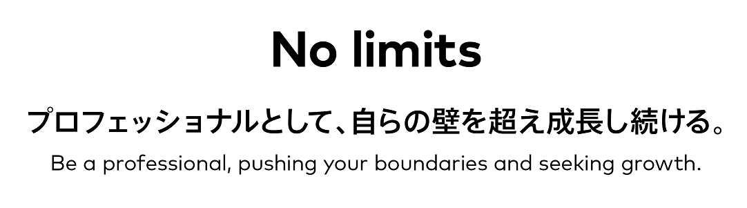 社員⼀⼈ひとりが⾃分⾃⾝の思い込みを乗り越え、変化を恐れずに挑戦し続けることは、「No limits」の実践そのものです。