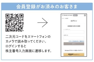 株主優待のご案内に記載の方法で、スマートフォン・インターネットにつながっているパソコンよりお申込みください。 -